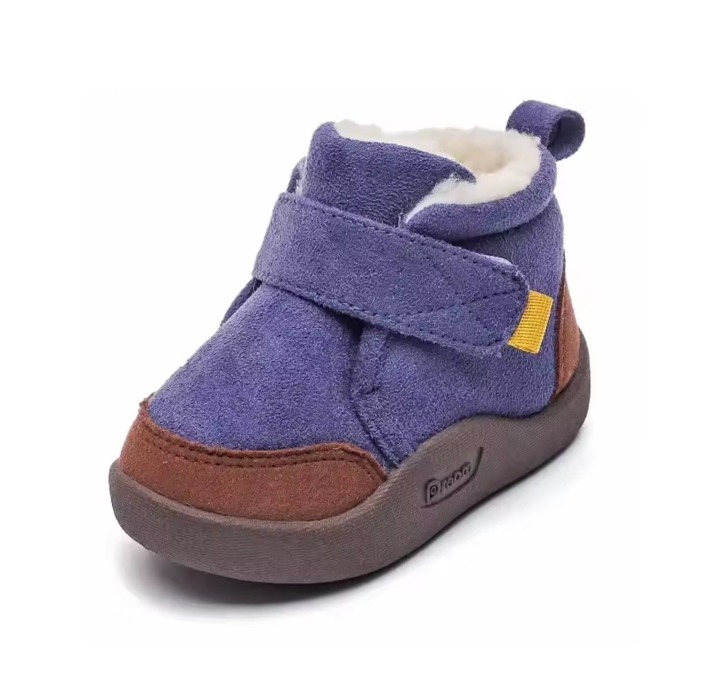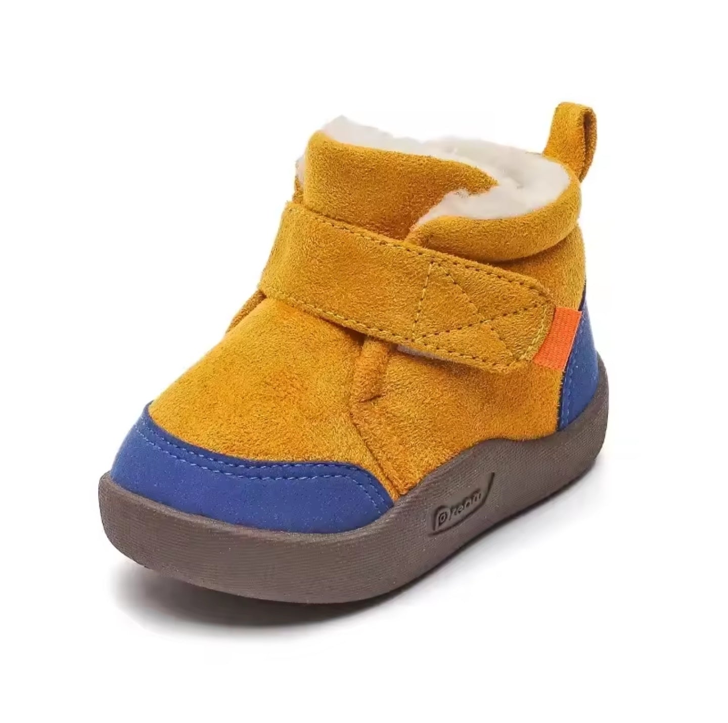Con un suave interior de felpa y una suela resistente antideslizante, estas botas garantizan que los pies de tu bebé estén calientes y protegidos en todo momento. Disponibles en colores vibrantes como naranja, azul, amarillo y caqui, añaden un toque de alegría a los fríos días de invierno.